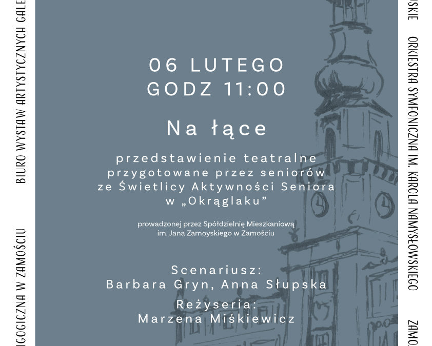 Tym razem na scenie zobaczymy wyjątkowe przedstawienie pt. „Na łące”, napisane i zagrane przez Seniorów z Okrąglaka Zamość. To pełna humoru, lekko przewrotna opowieść o wiośnie, która rozkwita nie tylko w przyrodzie, ale i w sercach bohaterów.