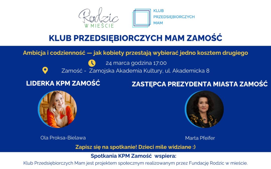 24 marca 2026 roku w Zamojskiej Akademii Kultury odbędzie się kolejne spotkanie Klubu Przedsiębiorczych Mam, poświęcone jednemu z najważniejszych wyzwań współczesnych kobiet: łączeniu ambicji zawodowych z codziennością życia rodzinnego. Wydarzenie odbędzie się w sali Wytwórnia Kultury przy ul. Akademickiej 8.
