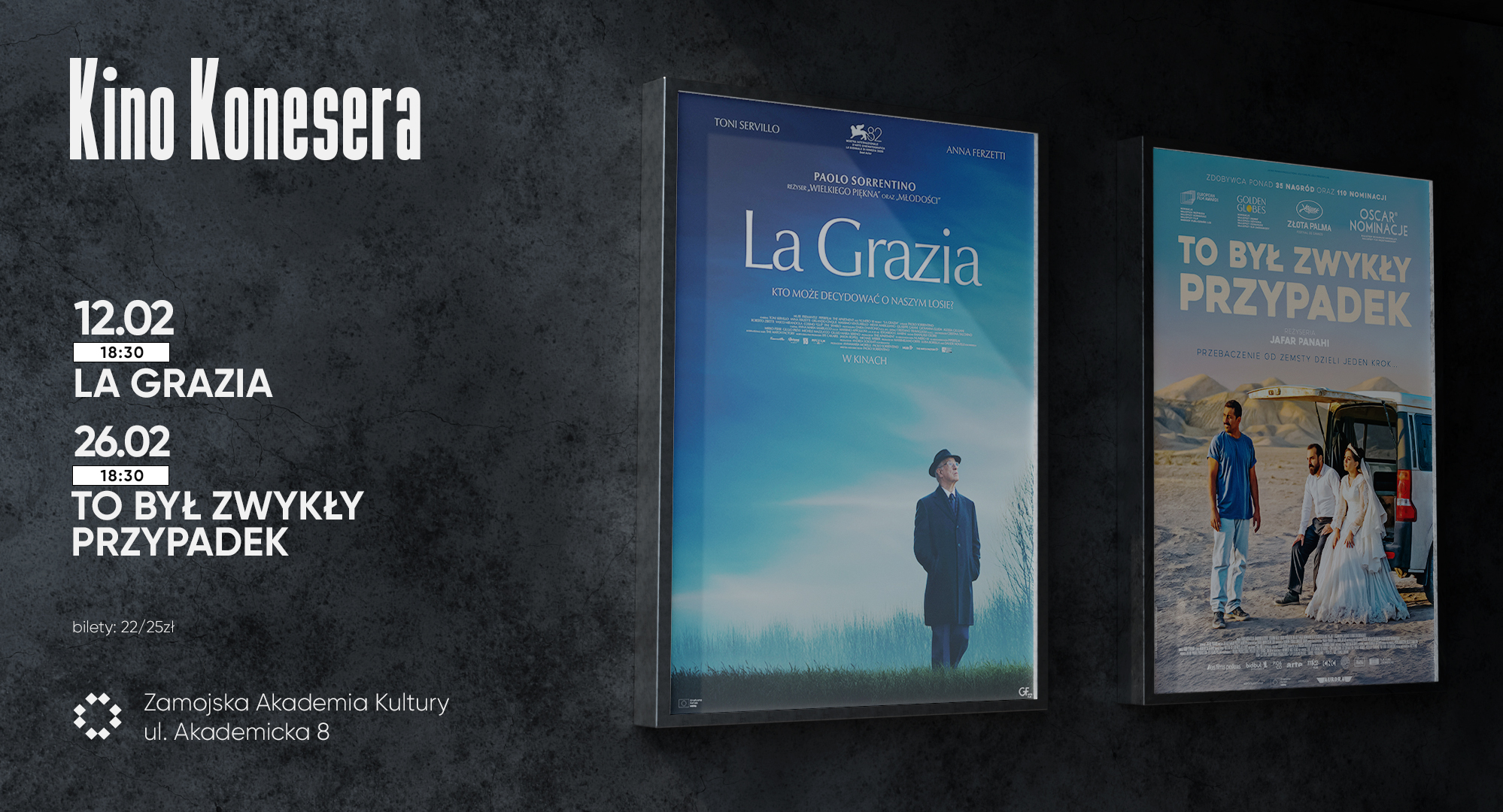 • przy wejściu do sali kinowej (30 min. przed seansem), ul. Akademicka 8