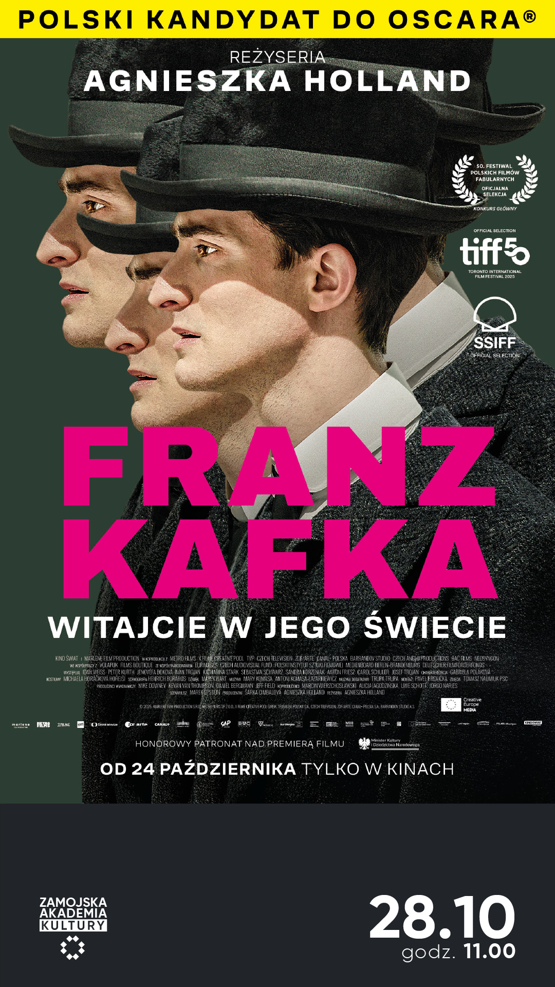 28.10.2025 godz. 11:00  - FRANZ KAFKA Międzynarodowa produkcja w reżyserii Agnieszki Holland – to nie tylko portret literackiej ikony XX wieku, która nieprzerwanie inspiruje artystów i fascynuje kolejne pokolenia. To opowieść o wrażliwym człowieku, którego lęki i dylematy mocno rezonują z dzisiejszym młodym pokoleniem. Film jest polskim kandydatem do Oscara. Bilety: 20 zł - sprzedaż […]